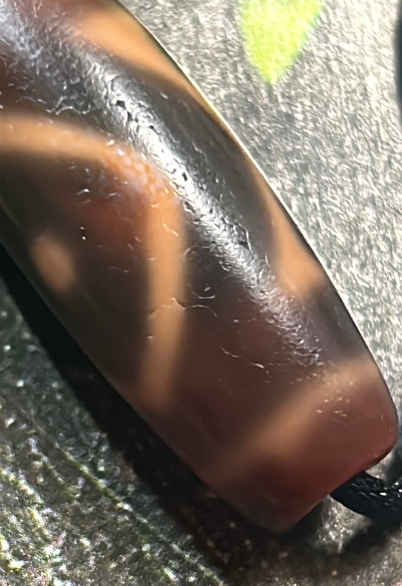 天然石(瑪瑙 めのう)を加工して作成されていますので、作成過程での傷や汚れ、凹みや石目などある場合もあります。